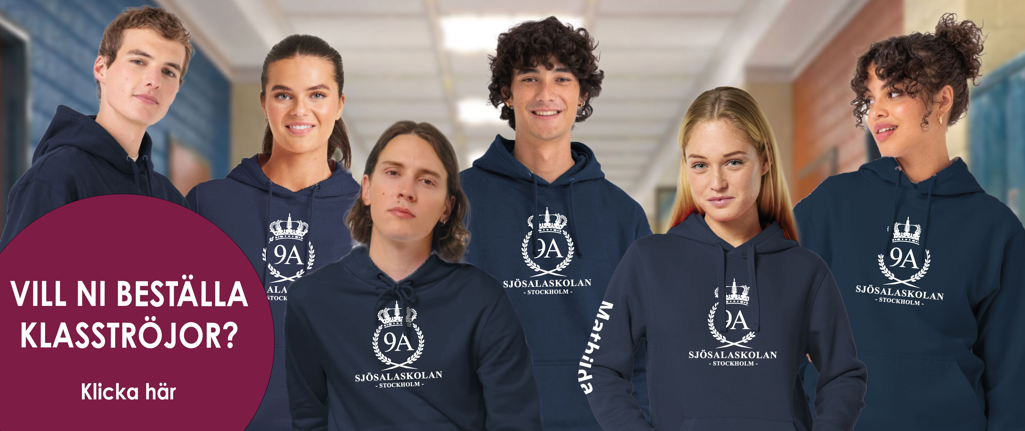 Vi erbjuder också klasströjor och avslutningströjor till skolornas nior. Genom åren har vi tryckt tiotusentals klasströjor med roliga och snygga tryck. Vi har idag Sveriges största galleri med tryckförslag för klasströjor. Enligt våra kunder så har vi också de snyggaste tröjorna, den kortaste leveranstiden och en grym kundservice!