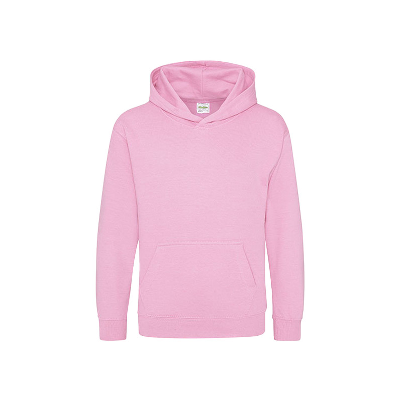 Mjuk och skön huvtröja med lätt flossad insida. Huvan är dubbelsydd och fickan fram på magen är genomgående. OBS! Barntröjan har inte snoddar som vuxentröjan har.