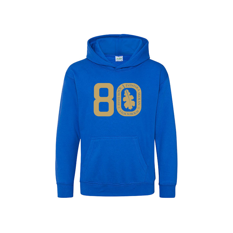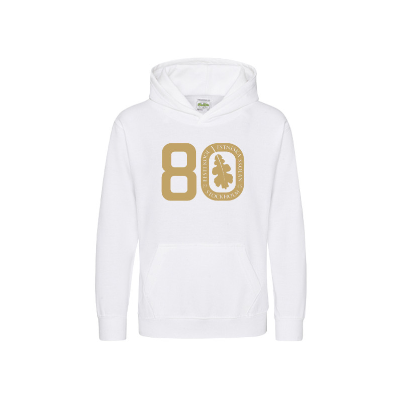 Märke: Just Hoods Material: 80% bomull och 20% polyester Mjuk och skön huvtröja med lätt flossad insida. Huvan är dubbelsydd och fickan fram på magen är genomgående. TRYCK:Skolans jubileumslogga trycks i guld stort på bröstet. Du kan välja till och få ditt namn eller valfri text på tröjan. Trycket är guld.