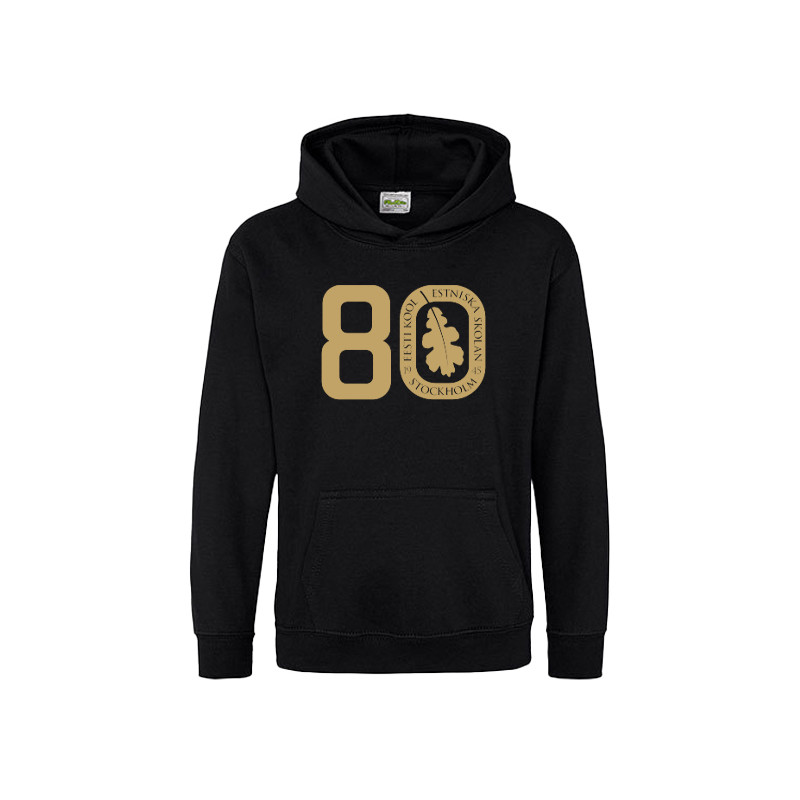 Märke: Just Hoods Material: 80% bomull och 20% polyester Mjuk och skön jacka med dragkedja. Dubbelsydd huva och fickor framtill. Flossad insida. OBS! Barntröjan har inte snoddar som vuxentröjan har.TRYCK:Skolans jubileumslogga trycks stort på ryggen. Du kan välja till och få ditt namn eller valfri text på tröjan. Trycket är i guld.