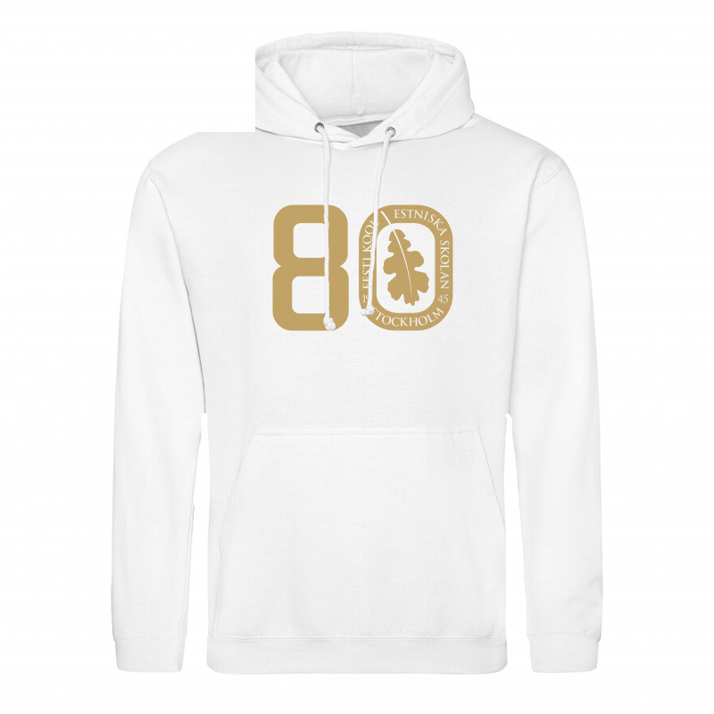 Märke: Just Hoods Material: 80% bomull och 20% polyester Mjuk och skön huvtröja med lätt flossad insida. Huvan är dubbelsydd och fickan fram på magen är genomgående. OBS! Barntröjan har inte snoddar som vuxentröjan har.TRYCK:Skolans jubileumslogga trycks stort på bröstet. Du kan välja till och få ditt namn eller valfri text på tröjan. Trycket är i guld.