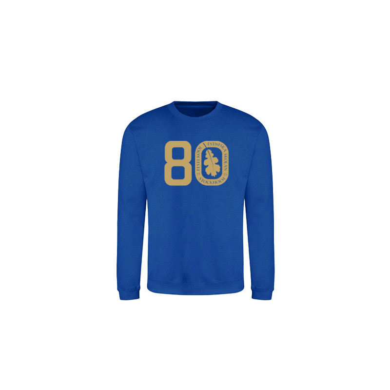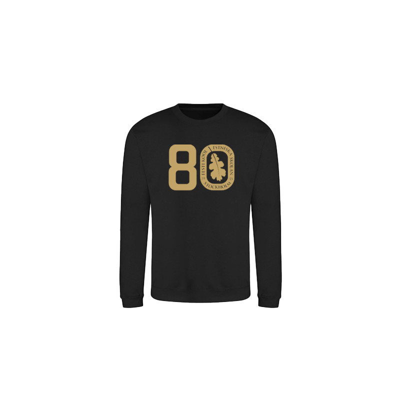 Märke: Just HoodsMaterial: 80% bomull och 20% polyester Klassisk skoltröja med rund halslinning. Flossad insida. TRYCK:Skolans jubileumslogga trycks stort på bröstet. Du kan välja till och få ditt namn eller valfri text på tröjan. Trycket är i guld.