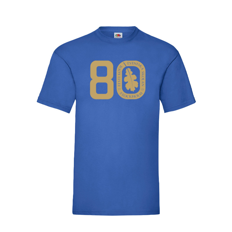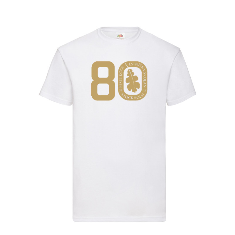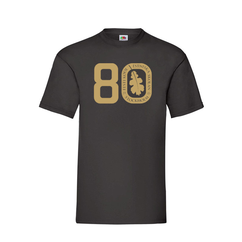 Märke: Fruit of the loom Material: 100% bomull Klassisk kortärmad t-shirt i rak modell. TRYCK:Skolans jubileumslogga trycks stort på bröstet. Du kan välja till och få ditt namn eller valfri text på tröjan. Trycket är i guld.
