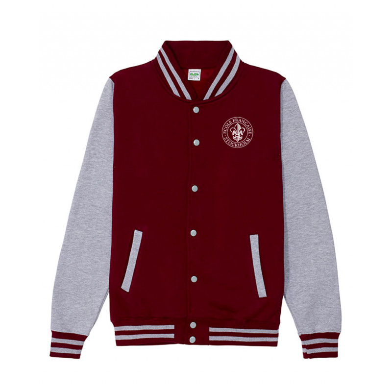 Du kan välja att antingen få skolans logga tryckt litet på vänster bröst eller stort på ryggen. Trycket är vitt. Du kan även välja till och få första bokstaven i ditt namn eller annan valfri bokstav på höger bröst. Det kostar 50 kr extra.
