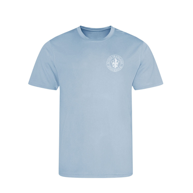 Material: 100% Polyester T-shirt i funktionsmaterial för barn. TRYCK:Skolans logga trycks litet på vänster bröst. Trycket är vitt på alla tröjfärger. Du kan även få ditt namn litet på höger ärm (+50 kr).