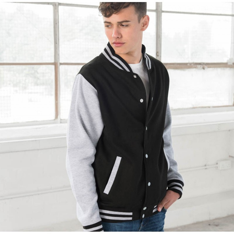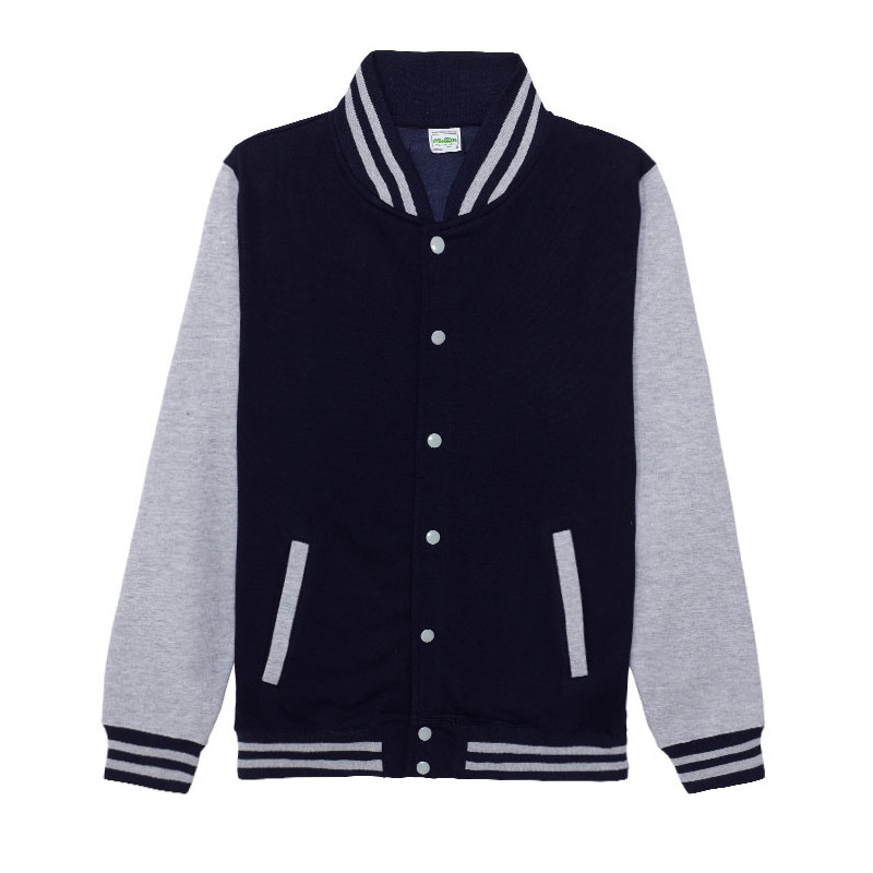 Märke: Just Hoods Material: 80% bomull och 20% polyester Alltid lika populär är den snygga och trendiga baseballjackan. Den har knappar fram och snedställda fickor i sidorna. På insidan av ena fickan finns ett litet hål så att man enkelt ska kunna dra hörlurar på insidan av jackan. Jackan är bred i modellen så vi rekommenderar inte långa smala barn att gå...